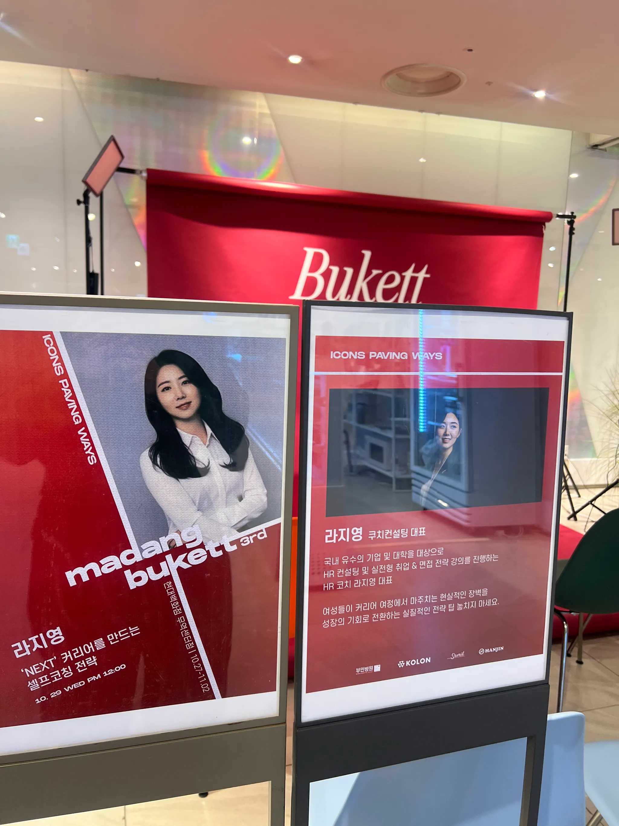 (출처=부켓) 국내 여성 중심 커리어 플랫폼 ’부켓’이 내달 2일까지 현대백화점 무역센터점에서 세번째 네트워킹 행사 ’마당부켓’을 개최합니다. ’Icons Paving Ways(앞길을 여는 아이콘들)’을 주제로 열린 이번 행사에는 ...